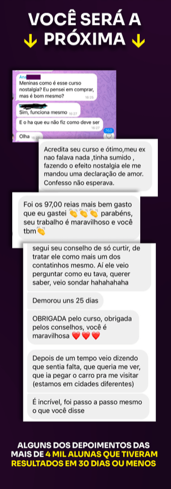 Você irá aprender a técnica efeito nostalgia completa, cada uma das fases para conseguir fazer ele voltar para você.